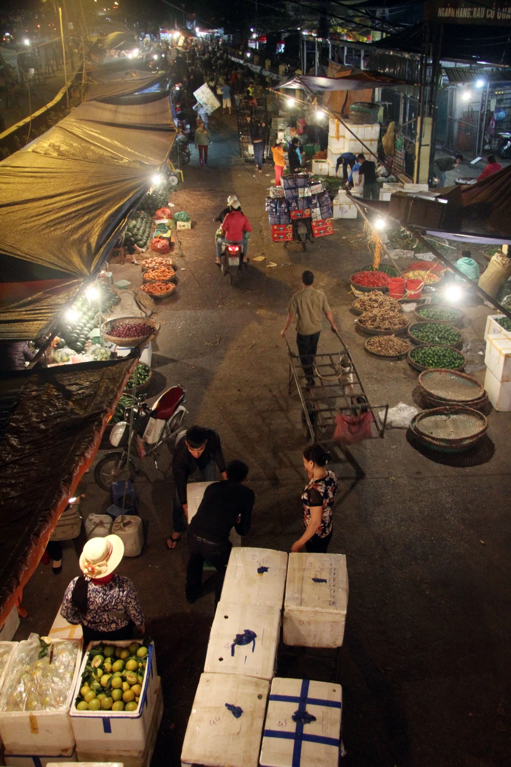 Chợ Long Biên vẫn ồn ào tập nập trong đêm.