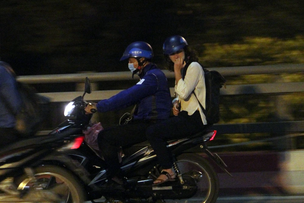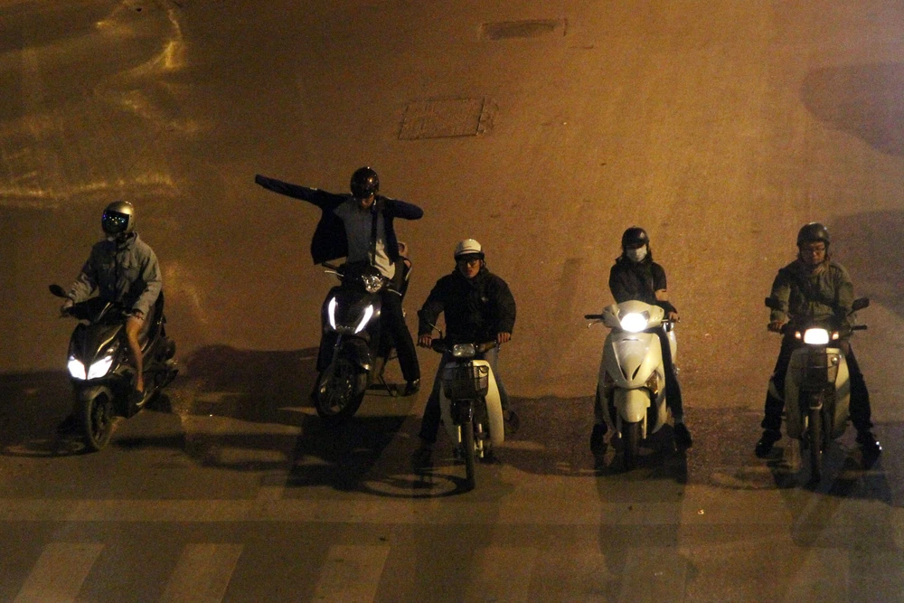Nhưng cũng có nơi vẫn nhiều phương tiện qua lại, những người ra đường vào đêm co ro trong lạnh giá.