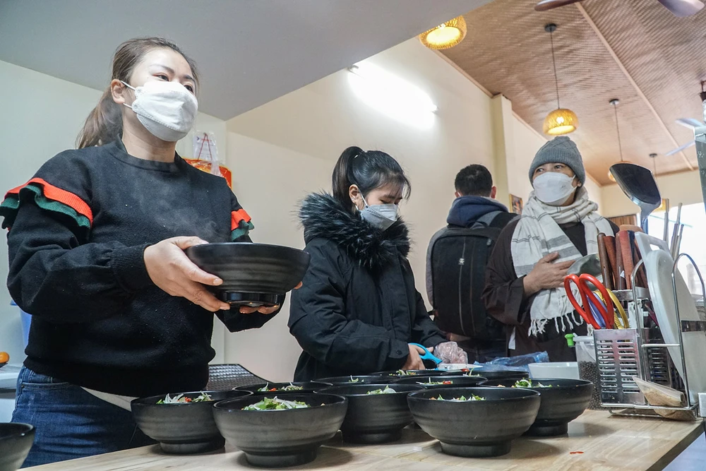 Chị Hoàng Kim Ngọc (32 tuổi, chủ quán) cho biết, quán ăn đã mở cửa phục vụ người dân được hơn một tuần nay.