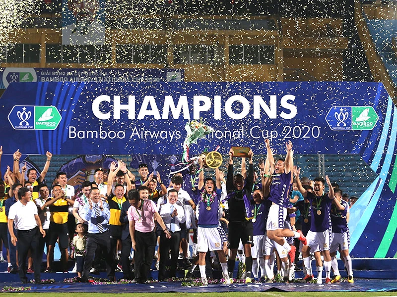 | Viết lại trang sử mới ở Cúp Quốc gia Sau 15 năm Bình Định hai lần liên tiếp đăng quang Cúp Quốc gia, nay Hà Nội tái lập chiến tích này. Đã năm lần vô địch V-League nhưng không phải lúc nào thầy trò HLV Chu Đình Nghiêm cũng gặp may mắn ở đấu trường cúp. Năm lần vào chung kết Cúp Quốc gia, Hà Nội đã viết lại trang sử mới ở mặt trận này với lần thứ hai lấy cúp làm dày thêm bộ sưu tập vô địch của mình. Chiếc cúp cũng là một động lực rất lớn cho nhà đương kim vô địch V-League trở lại đường đua vào cuối tuần này sau hai tháng nghỉ tránh dịch COVID-19. |