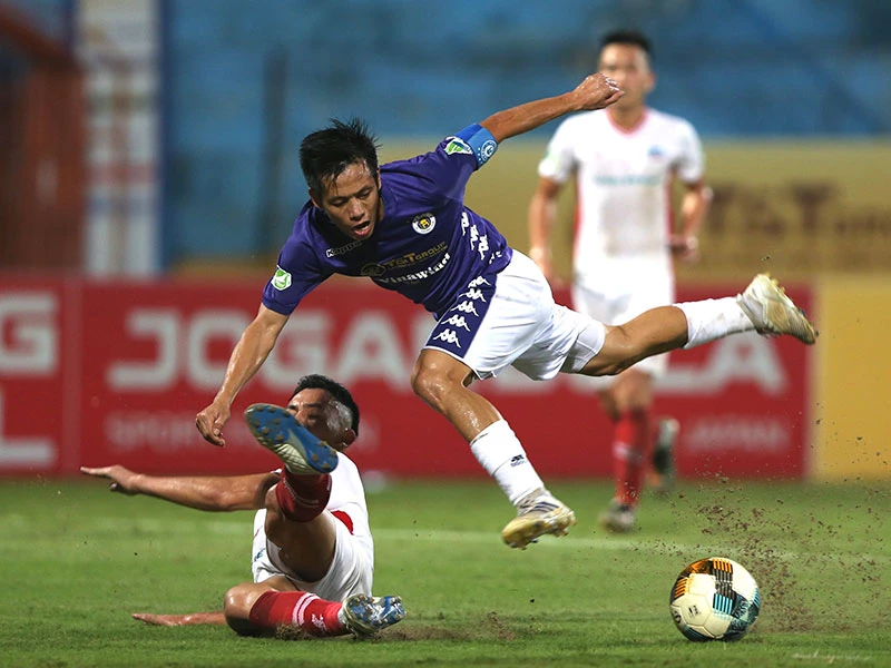 Hà Nội vẫn là những ông chủ trên sân bóng nhờ khả năng kiểm soát bóng tốt và cách đá áp sát gây khó chịu cho đối phương. Cá nhân đồng đều và lối chơi nhuần nhuyễn hơn đã giúp học trò Chu Đình Nghiêm thong dong tổ chức nhiều đợt tấn công về cầu môn Nguyên Mạnh.