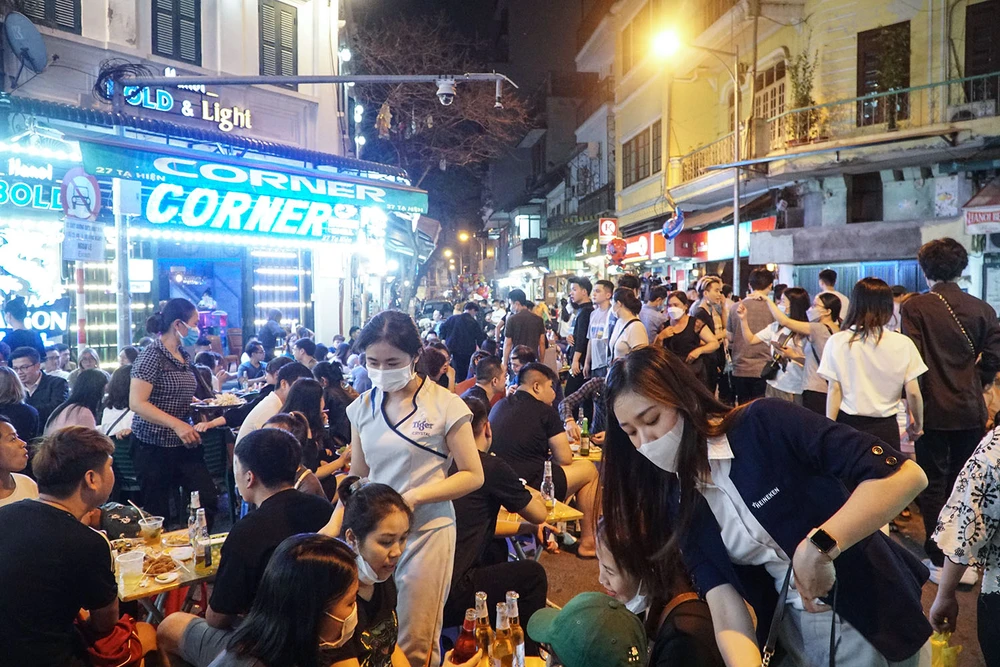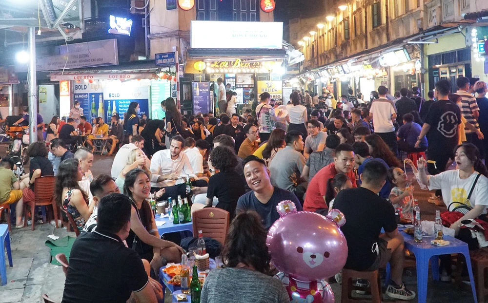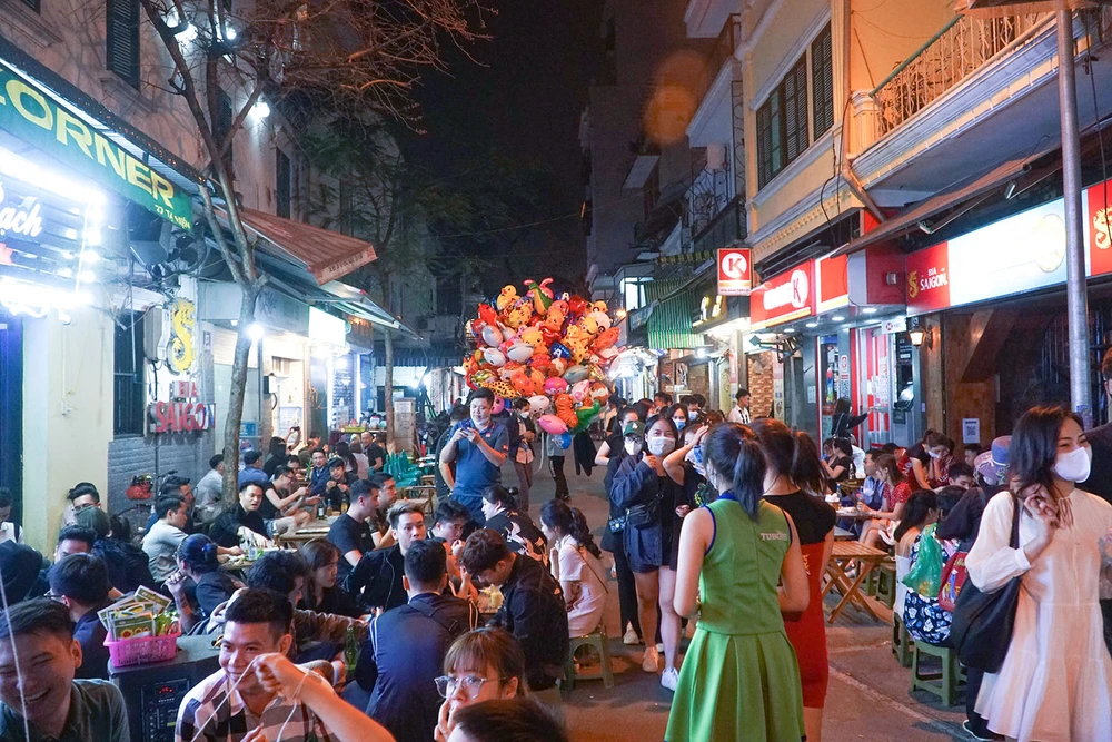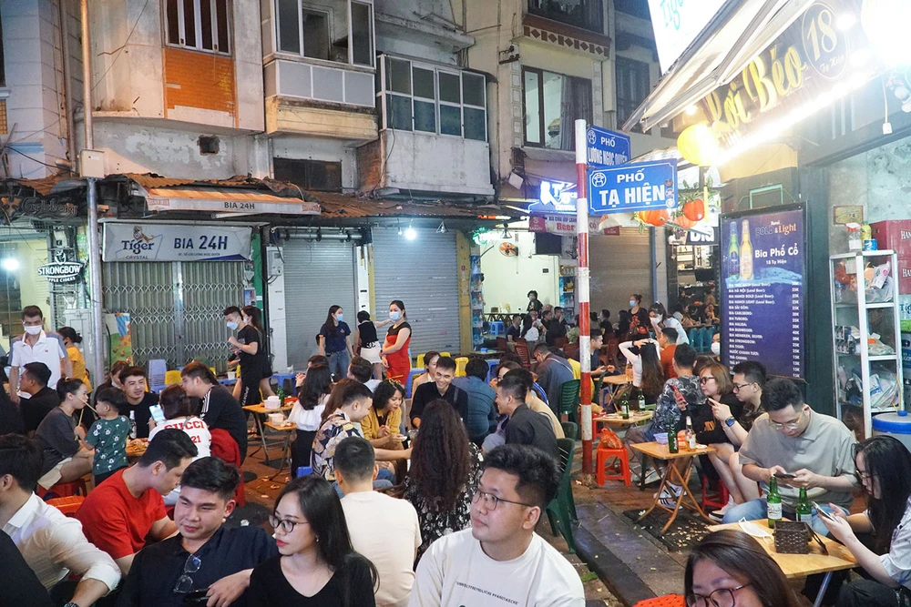 Đây là "trung tâm" ẩm thực, bia... thu hút nhiều người trẻ trong những tối cuối tuần, với đặc cách bàn ghế bày tràn ra mặt đường tương tự như phố đi bộ nhiều nước trên thế giới.