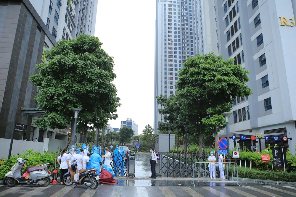 Theo UBND quận Bắc Từ Liêm, sau khi chị H. có kết quả dương tính, quận đã truy vết các trường hợp liên quan, triển khai khoanh vùng, phong toả đối với tầng 23 của toà chung R4A. Cạnh đó, phối hợp với lực lượng y tế lấy mẫu xét nghệm đối với 30 F1, 178 trường hợp liên quan.
