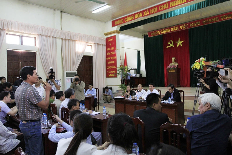 Cuộc đối thoại của Chủ tịch UBND TP Hà Nội Nguyễn Đức Chung với người dân xã Đồng Tâm ngày 22-4.