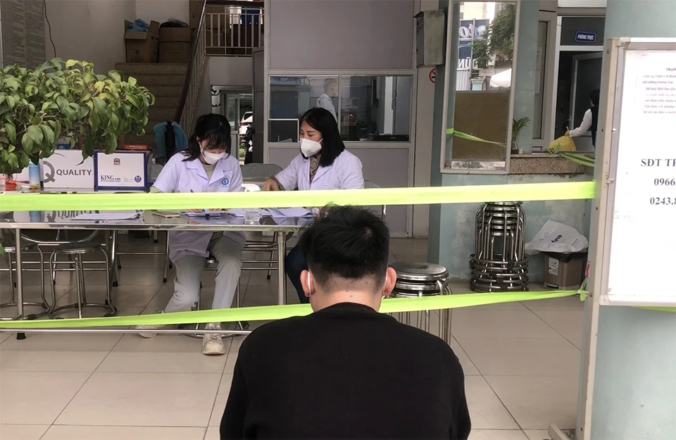 Trạm Y tế Yên Sở (phường Yên Sở, quận Hoàng Mai, Hà Nội) làm thủ tục cấp giấy chứng nhận nghỉ việc hưởng bảo hiểm xã hội (BHXH) cho người mắc COVID-19 (F0) trên địa bàn phường.