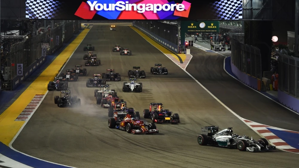 Chặng đua F1 ở Singapore diễn ra trên phố thực quanh vịnh Marina.