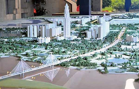Mô hình quy hoạch trục Nhật Tân - Nội Bài. Ảnh: TP