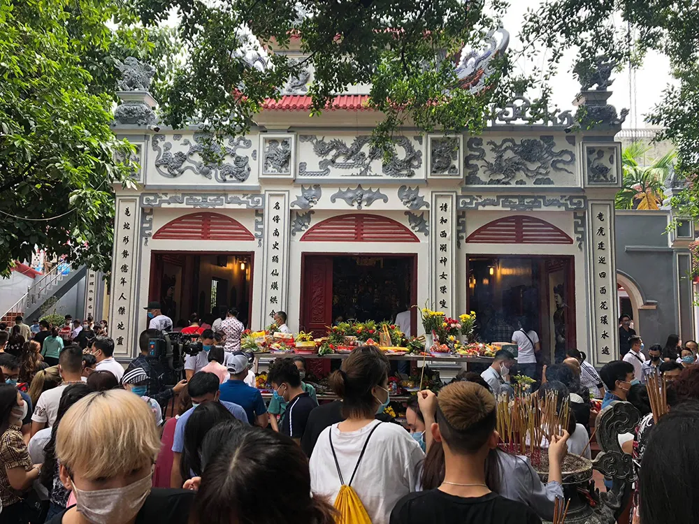 Phủ Tây Hồ tấp nập người dân đến lễ trong ngày 19-8, nhiều người không thực hiện các biện pháp phòng chống dịch.