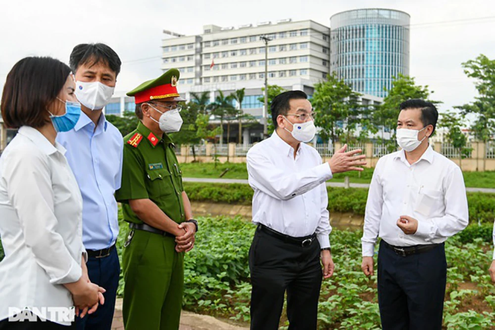 Chủ tịch UBND TP Hà Nội Chu Ngọc Anh kiểm tra công tác phong toả Bệnh viện Nhiệt đới Trung ương (cơ sở tại Kim Chung, Đông Anh) chiều ngày 5-5