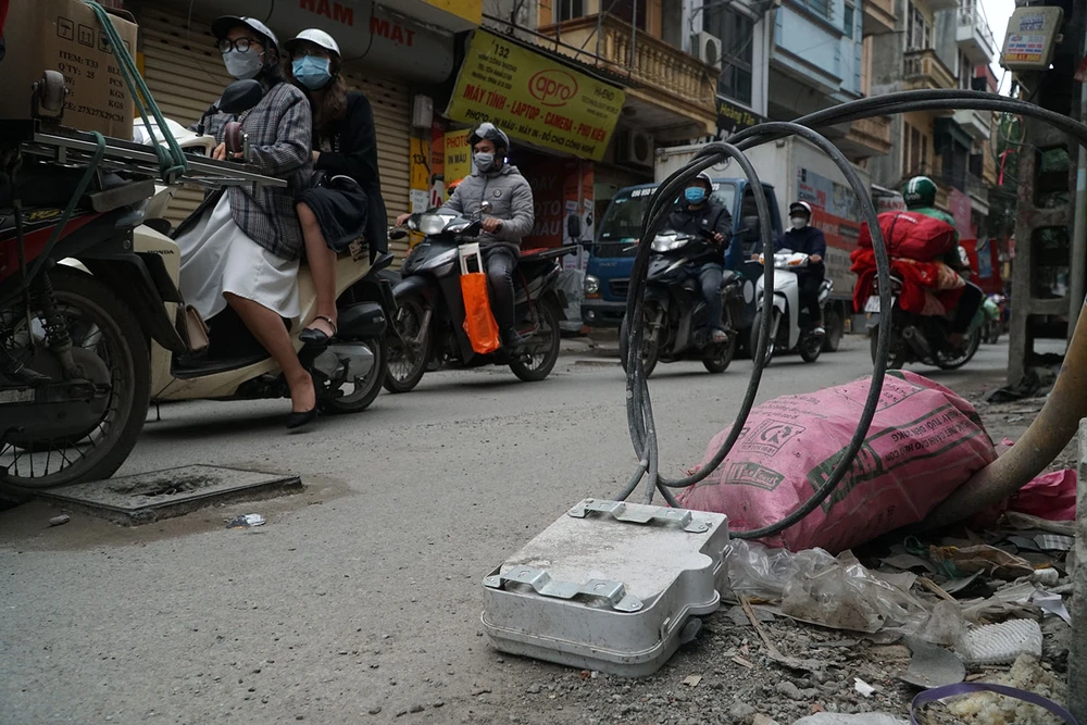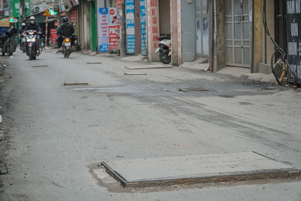 Trước tết, đơn vị thi công đã trải được một lớp nhựa trên 2 tuyến đường này để người dân có thể tạm đi lại trong những ngày Tết, sau đó họ nâng miệng hố ga, hố kỹ thuật để chuẩn bị trải lớp đường thứ 2 mới dẫn tới tình trạng mặt đường bị nhấp nhô.