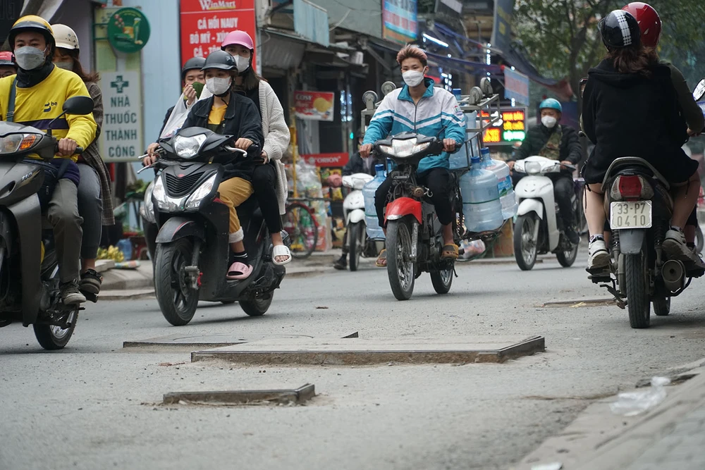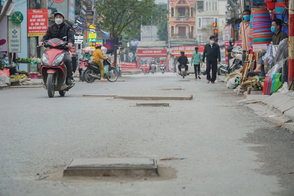 Không chỉ có các nắp hố ga, dọc theo tuyến đường này còn xuất hiện vô số ổ gà, ổ voi... nằm giữa đường gây nguy hiểm cho người dân tham gia giao thông.