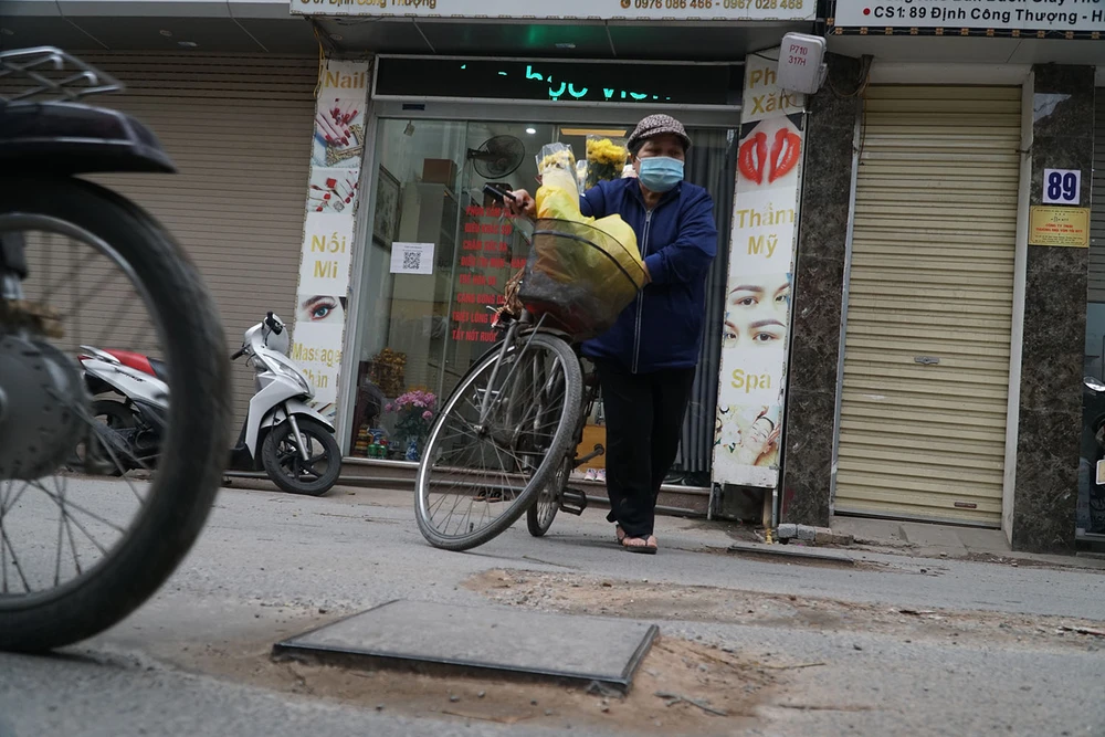 Theo người dân sinh sống tại đây, thời gian vừa qua, tuyến đường Định Công Thượng được tu sửa nhưng tới nay vẫn chưa được hoàn thành.