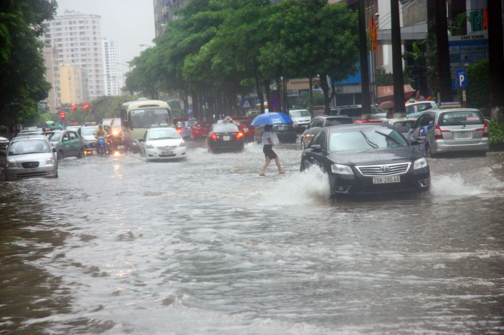 Mưa lớn khiến Hà Nội chìm trong biển nước tại nhiều tuyến phố.