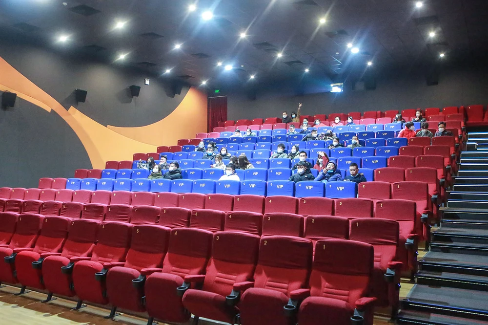 Tại khu vực phòng chiếu phim, khách hàng được sắp xếp ngồi bảo đảm khoảng cách an toàn để phòng chống dịch bệnh. Lượng khách không quá 50% trên tổng số ghế ngồi.