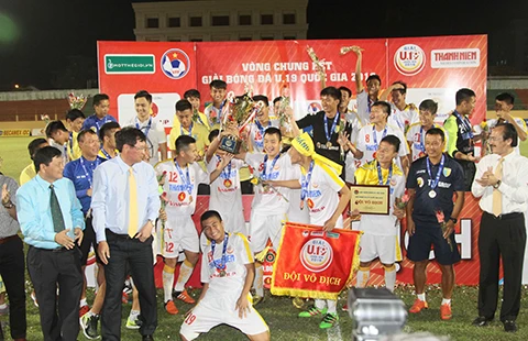 Thầy trò Lê Hồng Minh đoạt cúp vô địch giải U-19 quốc gia 2016.