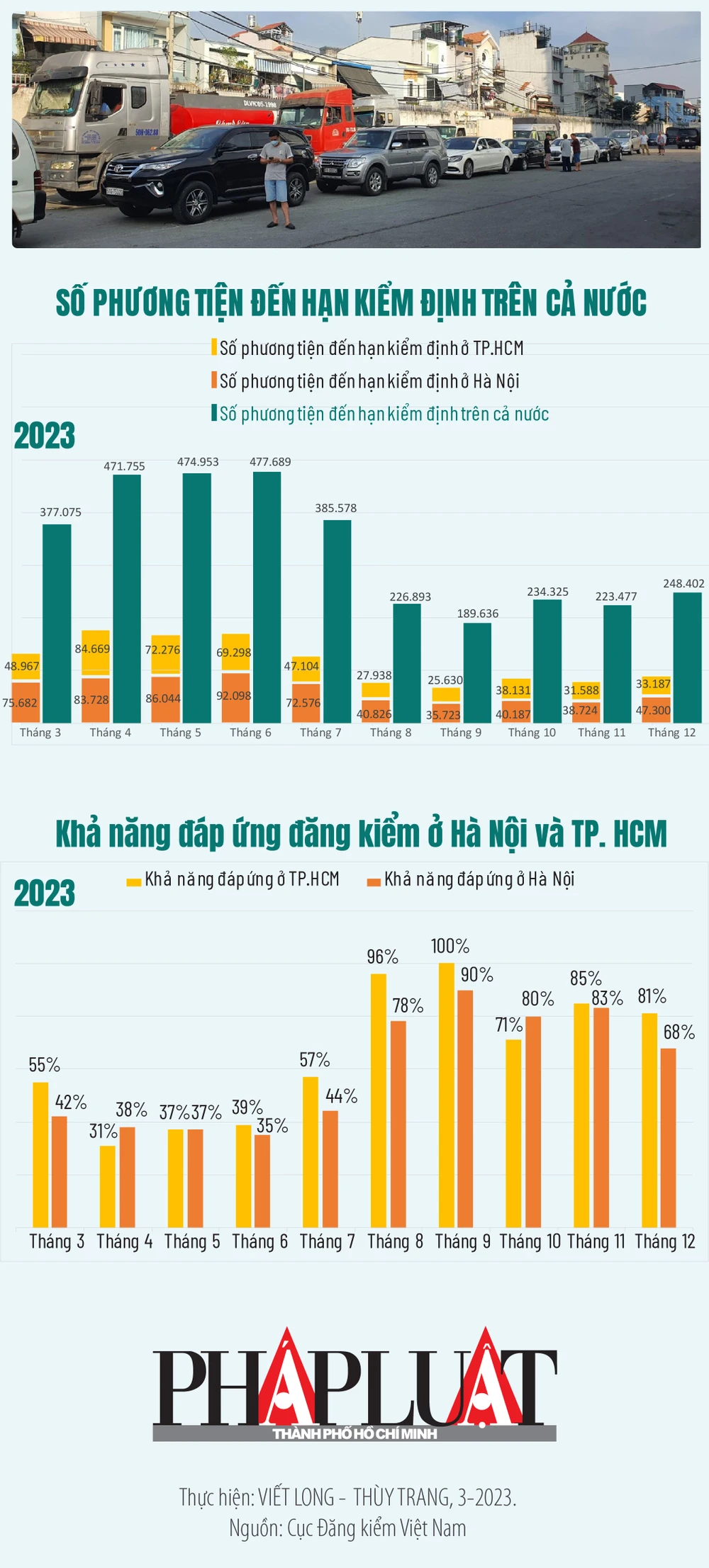 (PLO)- Số liệu cho thấy khả năng đáp ứng đăng kiểm ở Hà Nội và TP.HCM thời gian tới rất thấp.