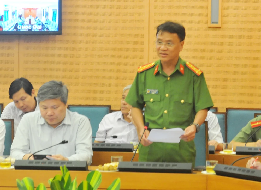 Ông Trần Ngọc Dương, Phó Giám đốc Công an TP Hà Nội thông tin tại cuộc họp. Ảnh: Phú Nguyễn