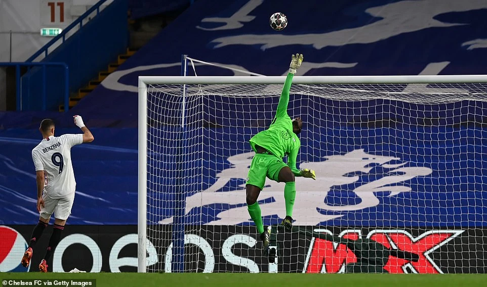 Thoát được bàn thua, Real Madrid nhanh chóng đáp trả bằng tình huống xoay người dứt điểm trước vòng cấm của Benzema ở phút 26. Bóng từ chân Benzema đi vào góc xa khung thành, phải nhờ thủ môn Mendy kịp thời bay người cản phá Chelsea mới tránh được bàn thua.