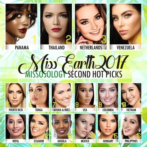 Trang Missosology đã đưa ra bảng xếp hạng tốp 10 người đẹp được yêu thích. Đứng đầu là Panama, tiếp theo là Thái Lan, Netherlands, Venezuela...
