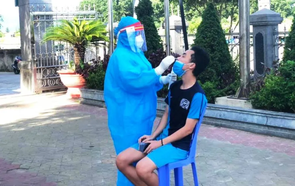 Lấy mẫu xét nghiệm cho người dân ở huyện Thạch Hà (Hà Tĩnh).