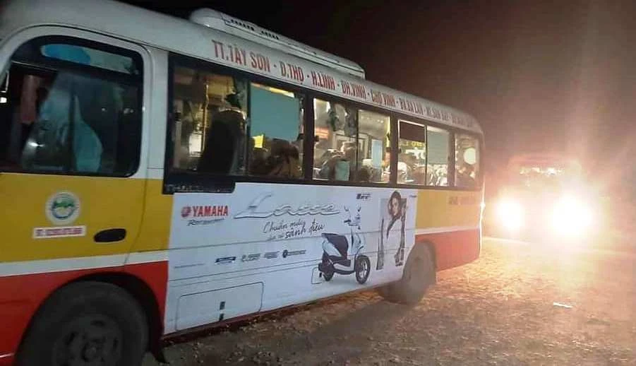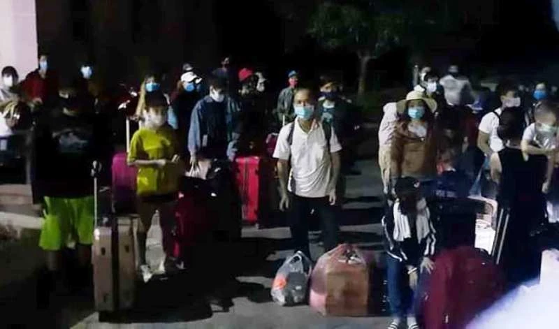 Xe buýt đón chở người dân từ Lào, Thái Lan về qua cửa khẩu quốc tế Cầu Treo (Hà Tĩnh) rồi đưa đến điểm cách ly tập trung ở huyện Can Lộc.