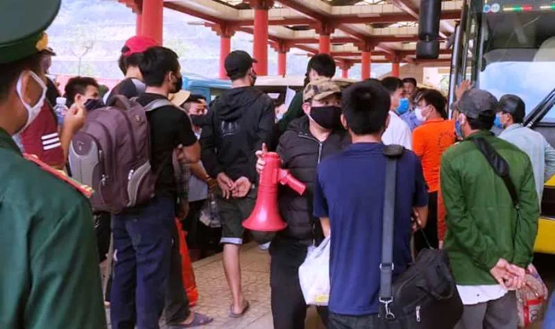 Dân Nghệ An, Hà Tĩnh từ Lào về Việt Nam qua cửa khẩu quốc tế Cha Lo (Quảng Bình). Ảnh: ĐL