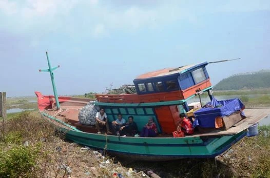 Những con tàu của ngư dân Hà Tĩnh bị bão hất lên nằm bờ.