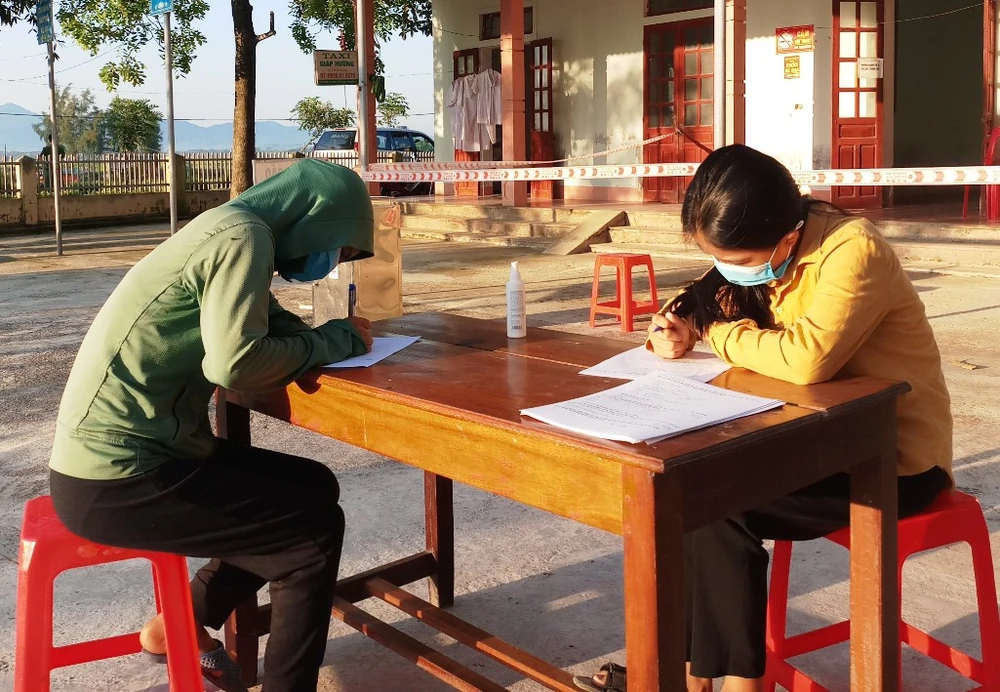 Người dân đến Trạm Y tế xã Cẩm Lộc (huyện Cẩm Xuyên, Hà Tĩnh) khai báo y tế.