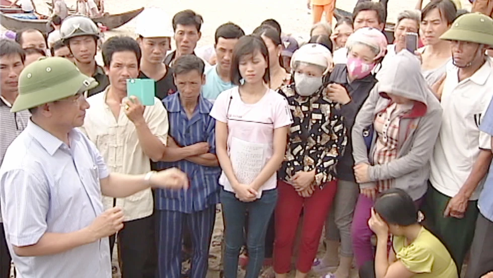 Ông Lê Đình Sơn - Bí thư Tỉnh ủy - Chủ tịch HĐND tỉnh Hà Tĩnh gặp gỡ, thăm hỏi, động viên, lắng nghe ý kiến bà con ngư dân vùng bị ảnh hưởng bởi sự cố môi trường.