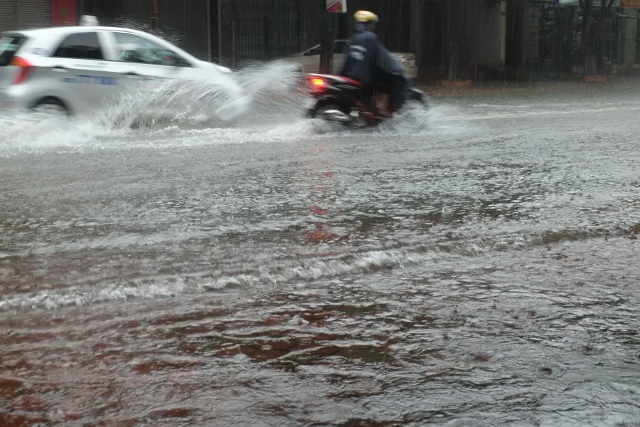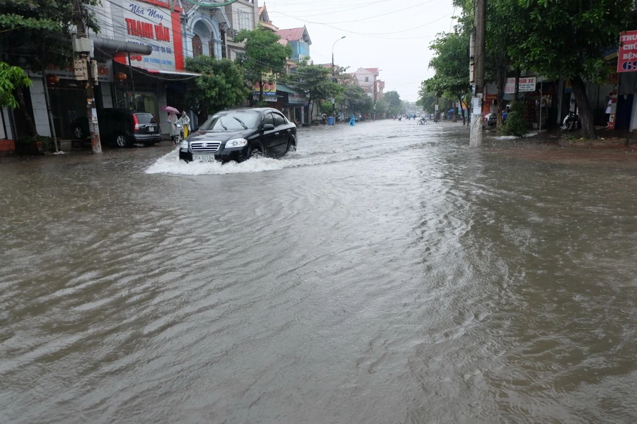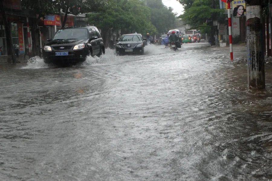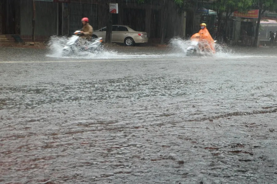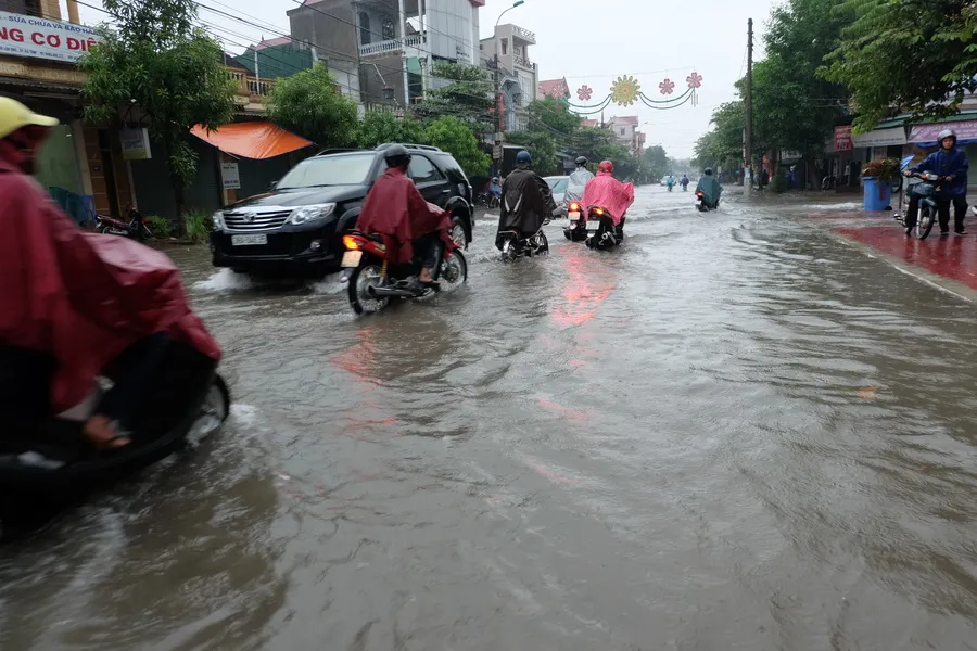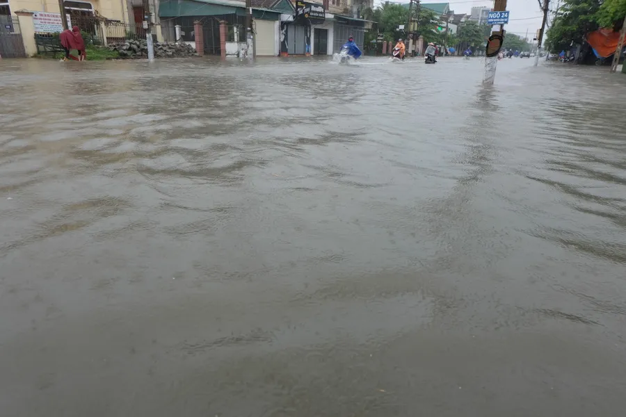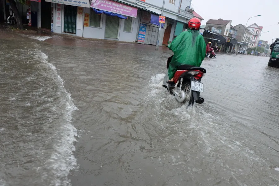 (PLO) - Sau cơn mưa nặng hạt đêm 5-10 và ngày 6-10, nhiều tuyến đường tại TP Hà Tĩnh ngập nặng như Hải Thượng Lãn Ông (khu vực trước bệnh viện Hà Tĩnh), đường Nguyễn Công Trứ, Đặng Dung, Nguyễn Du các tuyến đường xung quanh chợ Hà Tĩnh… Nhiều nơi nước ngập cả bánh xe gây chết máy một số xe máy đang lưu thông trên đường.