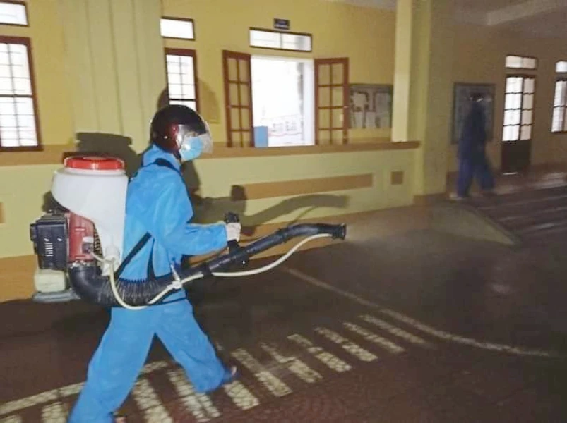 Y tế phun khử khuẩn ở huyện Hương Sơn.