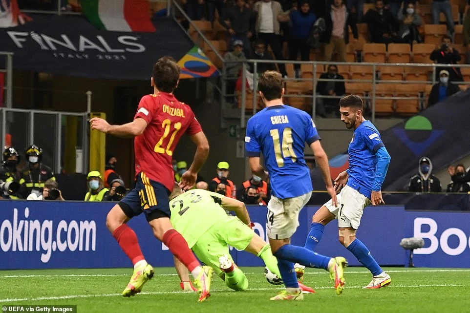 ĐKVĐ Euro tuyển Ý và Tây Ban Nha đối đầu nhau tại bán kết Nations League trên sân San Siro, trận đấu này tuyển Ý chấm dứt chuỗi 37 trận bất bại khi để thua Tây Ban Nha với tỷ số 1-2. Giành chiến thắng trước đội bóng “thiên thanh”, thầy trò HLV Enrique giành vé vào chơi trận chung kết, cũng như trả món nợ để thua tuyển Ý tại bán kết Euro 2020 hồi tháng 7.