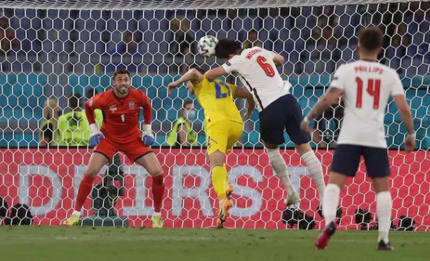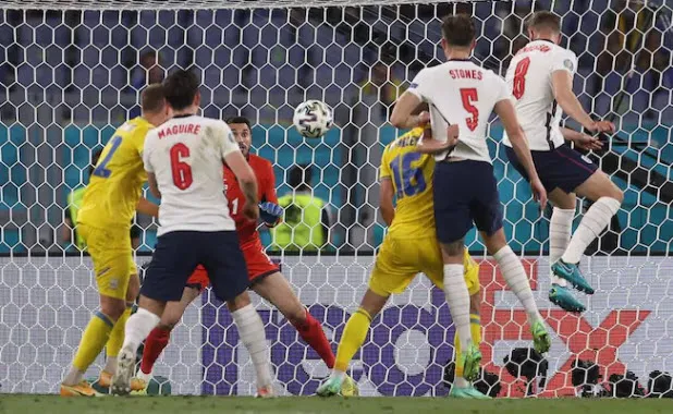 Ngay đầu hiệp hai, tuyển Anh khiến người Ukraina chết lặng bằng hai bàn thắng liền đánh sập mọi hi vọng ngược dòng của thầy trò HLV Shevchenko. Phút 46, từ quả đá phạt bên cánh trái, Luke Shaw tạt bóng vào chuẩn đến từng cm cho Harry Maguire bật cao đánh đầu tung lưới Bushchan ghi bàn nâng tỉ số lên 2-0 cho Anh.