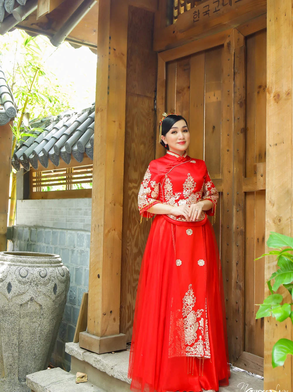 Đích thân Hà Vân đi đặt may những trang phục truyền thống của người Hoa cho các nhân vật trong MV. Ảnh: NVCC