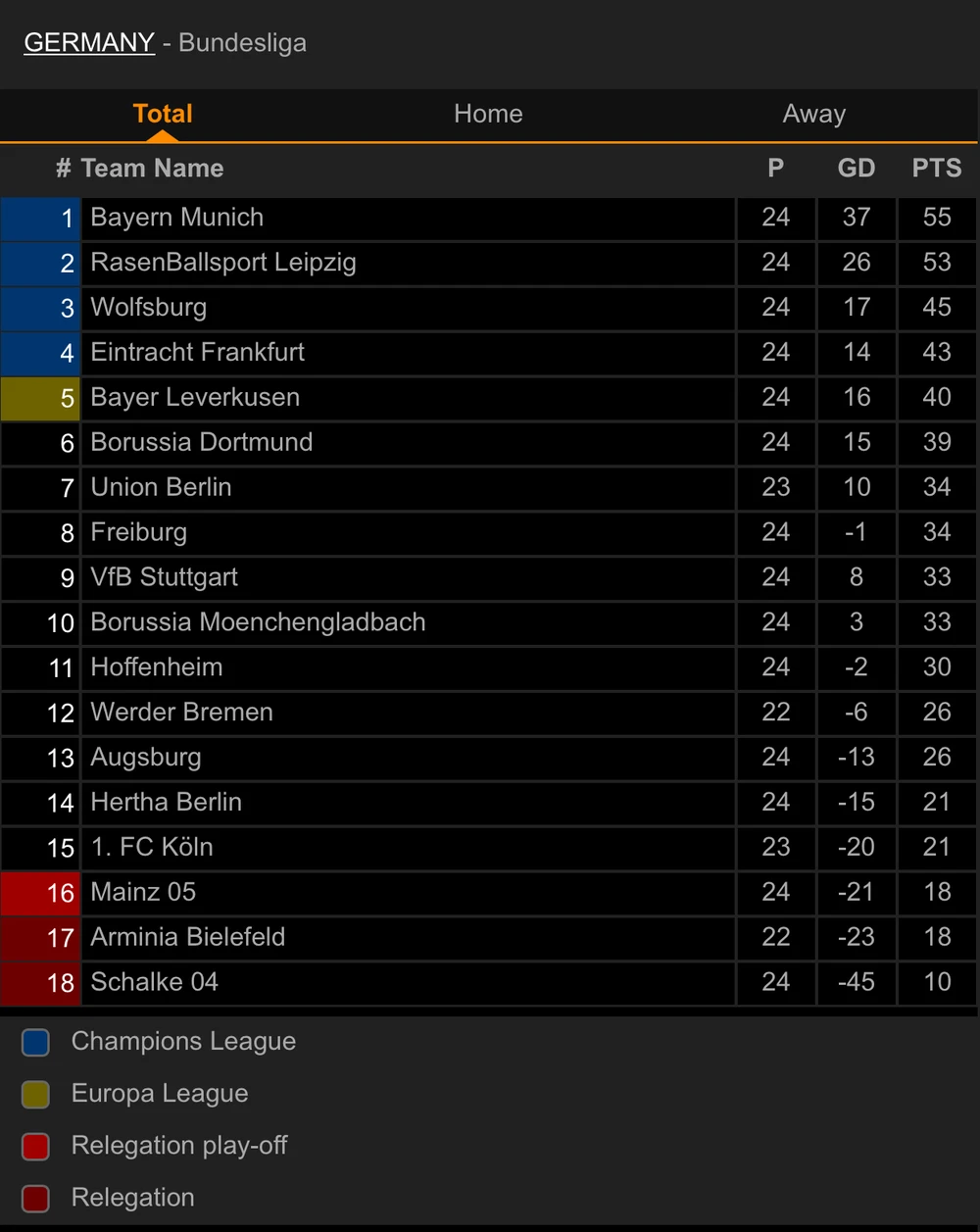BXH Bundes Liga: