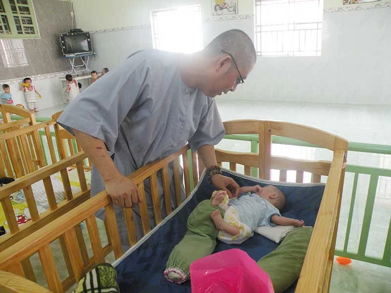 Đáng nhớ nhất đối với anh Lâm là khi anh nhặt bé Nguyễn Hoàng Phúc Nhân (nay đã hơn 11 tháng tuổi) về mái ấm. Tháng 8-2016, khi đi làm về gần tới nhà, thấy trong bụi chuối có chiếc giỏ, tới gần anh thấy đứa trẻ bị dị tật, miệng và mũi là một, hai con mắt chỉ là cục thịt. “Nhìn thấy con ai cũng sợ nhưng tôi nguyện bằng tình thương và sức lực của mình, tôi sẽ nuôi và tìm mọi cách chữa trị để con có được khuôn mặt như những người bình thường. Bé vừa đi phẫu thuật tái tạo lại mũi và sẽ còn nhiều cuộc phẫu thuật trong những thời gian tới” - anh Lâm ôm Nhân và nói.