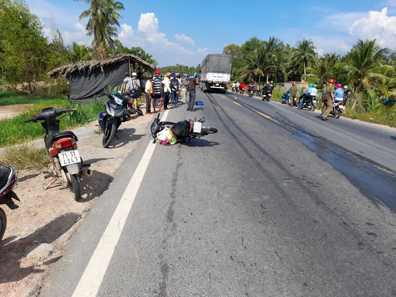 Khi xe máy 84L1- 568.40 lưu thông trên tuyến QL60 đến đoạn đường dẫn lên cầu Cổ Chiên thuộc ấp Thới Đức, xã Thành Thới A, huyện Mỏ Cày Nam, tỉnh Bến Tre xảy ra va chạm với xe tải 84C-08520 hiệu Hiệp Lợi do tài xế Thạch Rô Thi (32 tuổi, ngụ TP. Trà Vinh, tỉnh Trà Vinh) điều khiển theo chiều ngược lại.