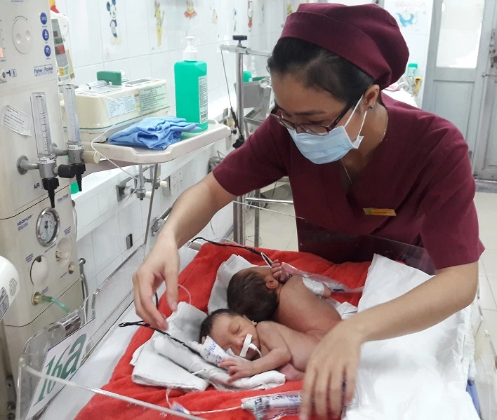 Hai bé sơ sinh tính đến nay đã được bốn ngày tuổi. Ảnh: HÀ PHƯỢNG