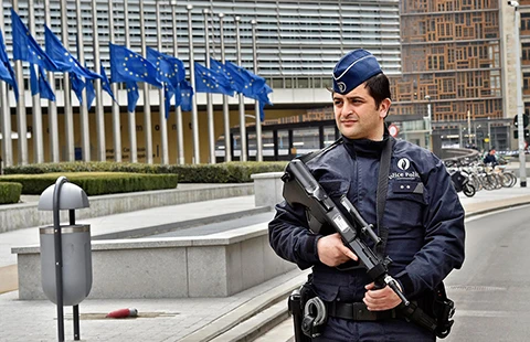 Tăng cường bảo vệ trụ sở Ủy ban châu Âu ở Brussels. Ảnh: AP