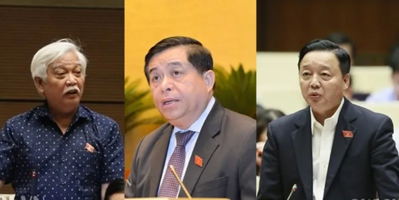 Từ phải qua: Bộ trưởng TN&MT Trần Hồng Hà, Bộ trưởng KH&ĐT Nguyễn Chí Dũng, ĐBQH Dương Trung Quốc.