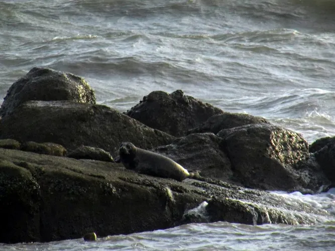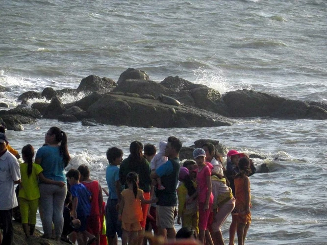 Đáng nói là hai con hải cẩu này khá dạn dĩ mặc dù rất đông người đứng trên bờ gần đó chỉ trỏ, xem nhưng chúng vẫn không tỏ ra sợ hãi. Thậm chí có người còn dùng flycam bay sát trên đầu để quay thì chúng mới trườn khỏi rạn đá lặn xuống biển.