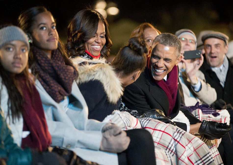 Tổng thống Obama bên vợ và hai cô con gái, Sasha và Malia.