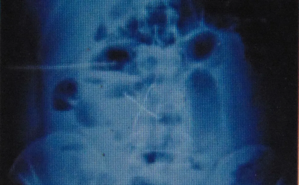 Kết quả chụp A quang cho thấy hai cọng kẽm hình chữ X nằm trong bụng bệnh nhân B. Ảnh: CTV