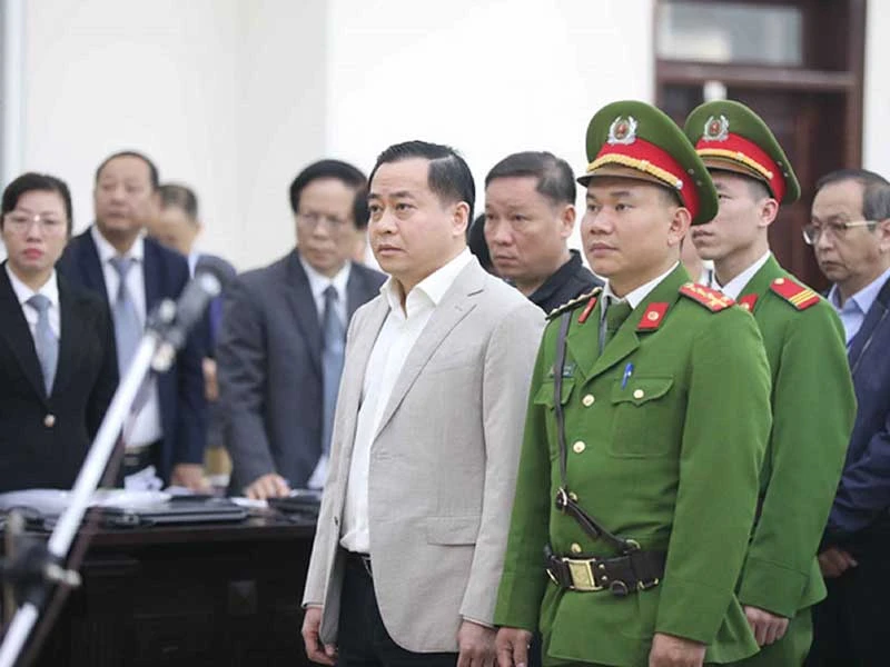 Phan Văn Anh Vũ cùng các bị cáo tại tòa. Ảnh: TTXVN