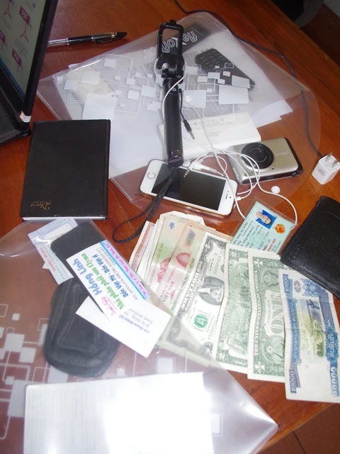 Các tài liệu công an thu giữ của hai đối tượng.