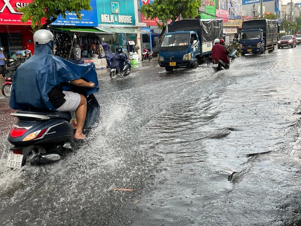 Cơn mưa nhỏ chiều 2-3 cũng làm cho tuyến đường Lê Thị Hà ngập nước. Ảnh VIỆT HOA