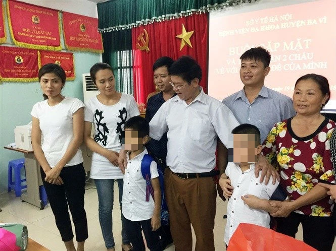 Hai gia đình nhận lại con tại BVĐK Ba Vì sáng 19-7. Ảnh: HÀ PHƯỢNG