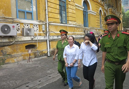 Ngày 20-1, TAND TP.HCM xử sơ thẩm và tuyên phạt bị cáo Trương Thị Cẩm Nhung 13 năm tù, Nguyễn Thị Thanh Mận 10 năm tù, Thạch Phận 20 năm tù về hai tội lừa đảo chiếm đoạt tài sản và làm giả con dấu, tài liệu của cơ quan, tổ chức; bị cáo Lê Quang Vinh 3 năm tù về tội làm giả con dấu, tài liệu của cơ quan, tổ chức. Ngoài ra, tòa còn yêu cầu các bị cáo phải liên đới bồi thường hơn 1,2 tỷ đồng đã chiếm đoạt của các bị hại.