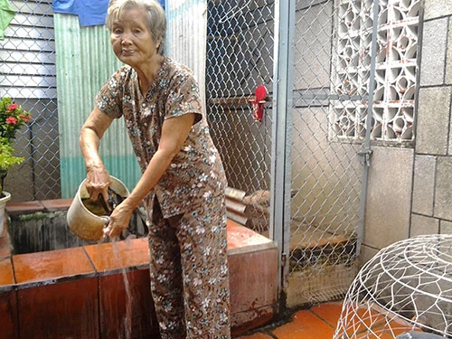 Cụ bà Nguyễn Thị Tư (86 tuổi) vẫn duy trì thói quen xài nước giếng.