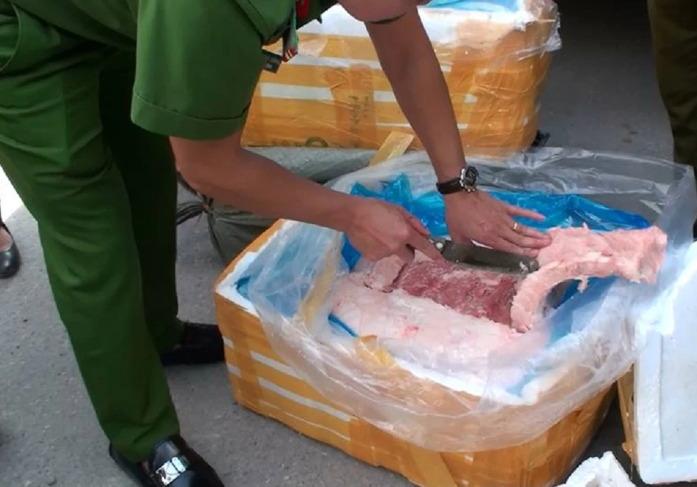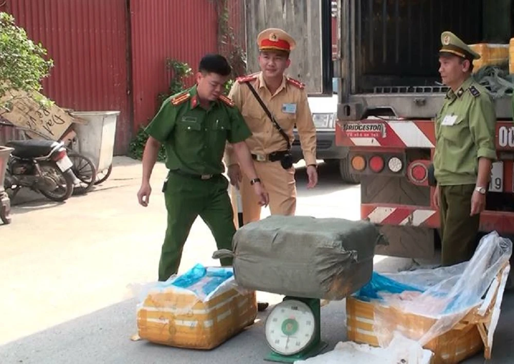 Theo đó, khoảng 22 giờ ngày 5-5, tổ công tác của Cục Cảnh sát môi trường phối hợp với Phòng Tuần tra kiểm soát giao thông đường bộ cao tốc (Cục CSGT, Bộ Công an), Đội Quản lý thị trường số 5 (Chi cục Quản lý thị trường Hà Nội) và Phòng Cảnh sát môi trường (Công an TP Hà Nội) bất ngờ kiểm tra xe container biển số 60C-057.10 kéo theo thùng đông lạnh đang di chuyển trên đường cao tốc Pháp Vân - Cầu Giẽ.